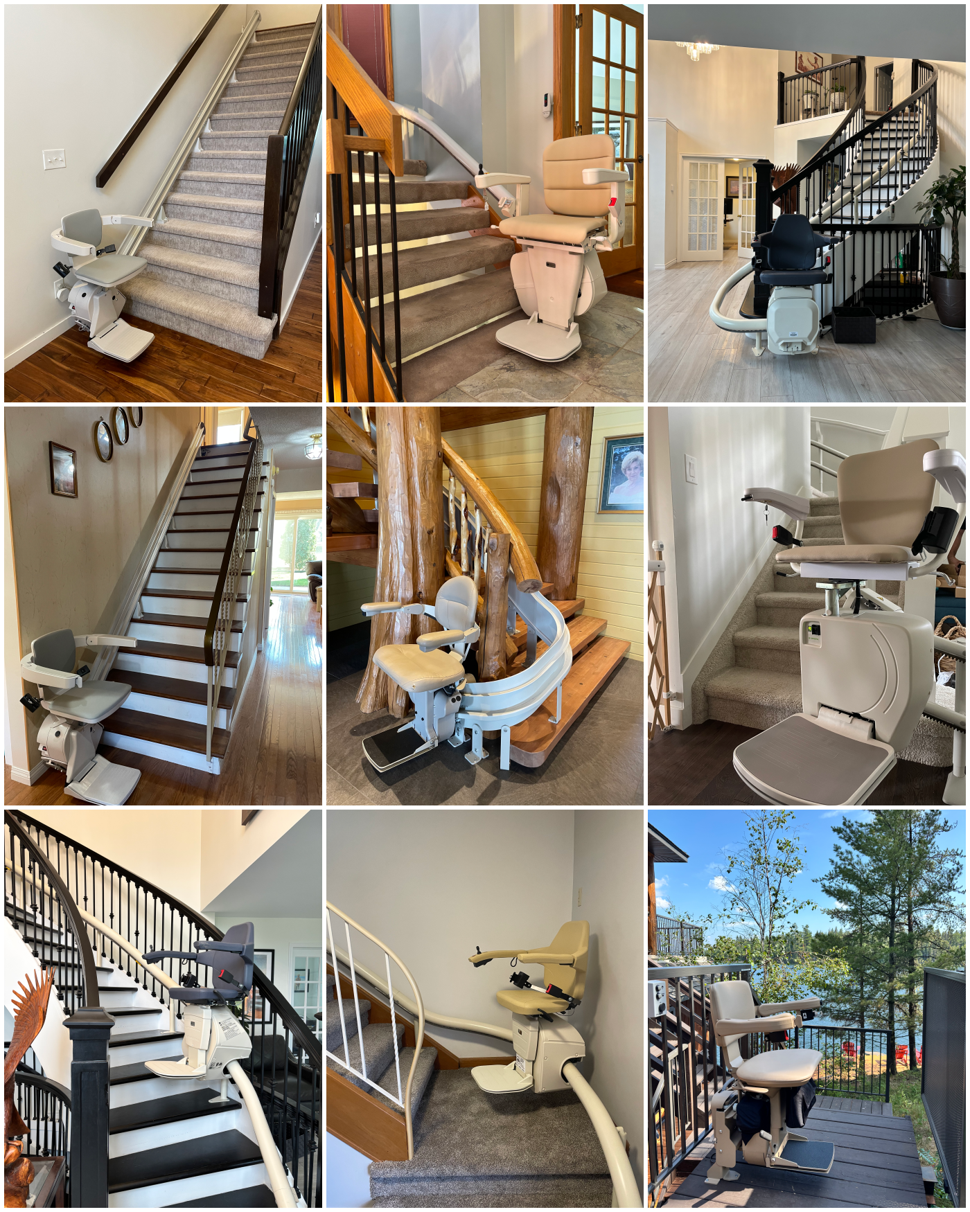 A selection of residential stair lift installations completed by Elevate Accessibility Ltd. (formerly CHCP Elevators Ltd.) across Manitoba and Northern Ontario.